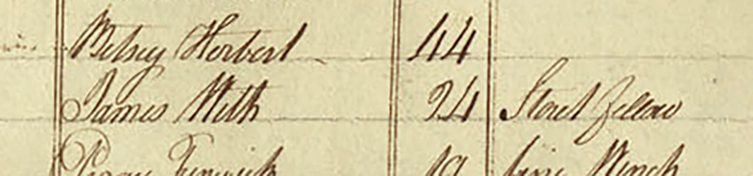 Detail from page 133 of the Book of Negroes (1783), listing a former slave of George Wythe, James With (Wythe).